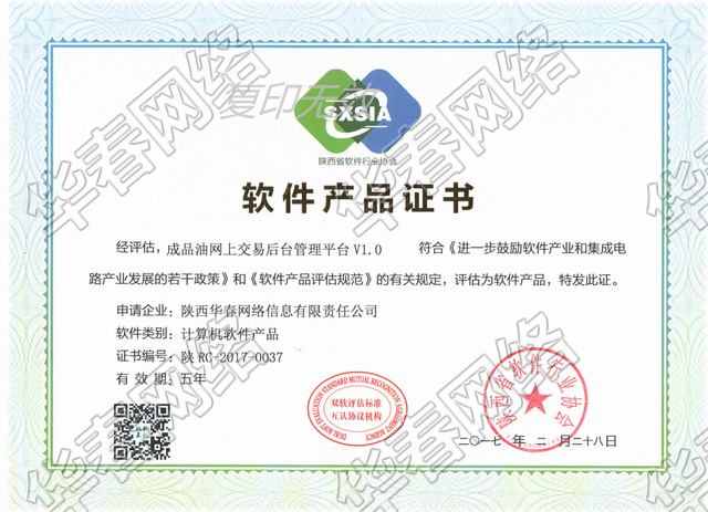 成品油網(wǎng)上交易平臺(tái)軟件產(chǎn)品證書(shū)